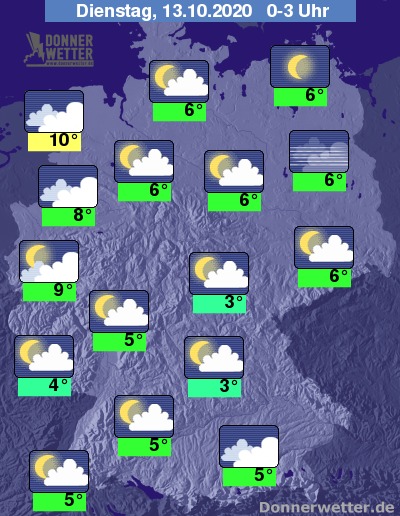 In der Nacht bleibt der Himmel vor allem im Westen, Nordwesten sowie am Alpenrand bedeckt. In den übrigen Landesteilen überwiegen lockere Wolken, vor allem im Osten und Nordosten kann sich gebietsweise auch Nebel bilden. Schauer sind in der Nacht auf Dienstag nicht zu erwarten.