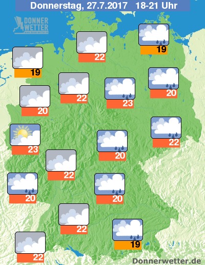 Die Höchstwerte liegen dabei zwischen 19 Grad an den Küsten und im Alpenraum und bei bis zu 23 Grad in Köln und Magdeburg.