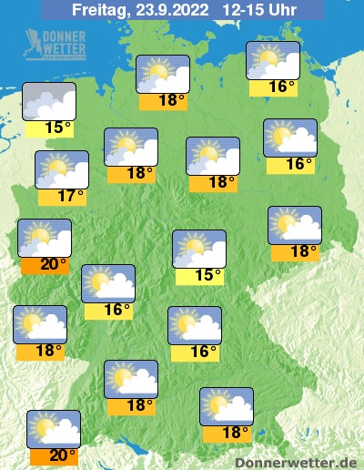Heute Abend können im Nordseeumfeld erste Schauer durchziehen, über der übrigen Nordwesthälfte zieht es sich mehr und mehr zu. Weiter nach Süden und Osten hin ist es noch meist aufgelockert, teils aber auch schon stark bewölkt, jedoch trocken. Die Temperatur liegt bei 15 Grad in Wilhelmshaven und 20 Grad in Freiburg.
