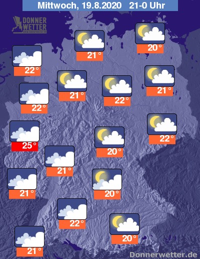 Am Abend klingen letzte Schauer an der Oder ab. Sonst gibt es eine freundliche Mischung aus Sonne und Wolken. Richtung Sachsen kann man den Sonnenuntergang noch für längere Zeit genießen. Von Frankreich und Benelux her ziehen dichtere Wolkenfelder einer Warmfront auf, die stellenweise etwas Regen im Gepäck haben können.