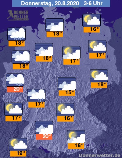 Bis zu den Frühstunden kühlt die Luft auf 14 bis 20 Grad ab. Vor allem im Westen bleibt es unangenehm schwül.