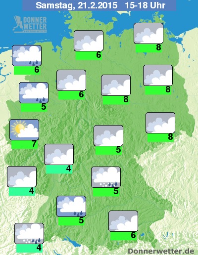 Heute Abend lockert die Bewölkung nach Nordwesten hin häufig auf und es bleibt mit Ausnahme der küstennahen Regionen meist trocken, ansonsten halten sich hingegen überwiegend dichte Wolken, wobei sich die Niederschläge in Form von Regen, Schneeregen oder Schnee weitgehend auf den äußeren Westen, Südwesten und das Alpenvorland beschränken, dabei kann es durch Schneefall besonders im Süden oft glatt auf den Straßen sein. An der Ostsee weht anfangs noch ein teils starker Wind. Die Abendwerte liegen bei 4 Grad am Niederrhein und etwa 0 Grad im Vogtland.