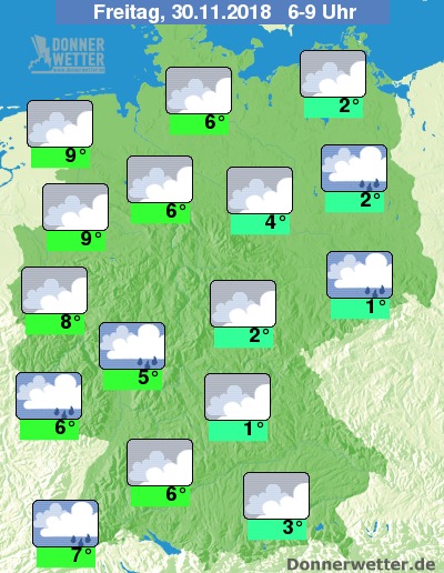 Die Temperaturen sinken auf Werte um 9 Grad C in Ostfriesland und um 1 Grad C im Erzgebirge.