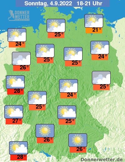 Die Temperaturen gehen bis Mitternacht auf Werte um 23 Grad am Niederrhein und 17 Grad an der Ostseeküste zurück.