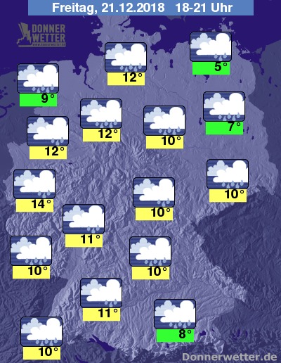 Am Abend halten sich weiterhin kompakte Wolken mit häufigem Regen, zum Teil schauerartig verstärkt. Später gibt es dann auch kurze trockene Pausen.