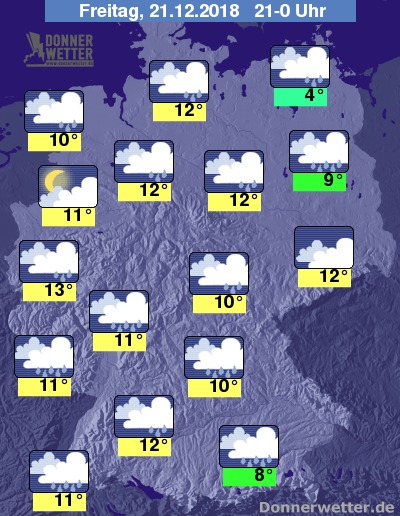 Die Temperaturen gehen bei lebhafter Luftbewegung bis zu den Frühstunden nur leicht zurück und liegen meist bei mlden 5 bis 9 Grad, im Südwesten verbleiben die Werte meist sogar im zweistelligen Bereich von 10 oder 11 Grad.