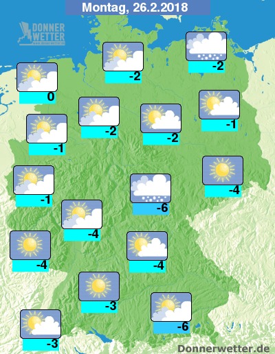 Heute wechseln sich Sonne und wolkige Abschnitte miteinander ab. Über den Mittelgebirgen können einzelne Schneeschauer auftreten. Im Norden dominieren die Wolken und strichweise muss mit Schneefällen oder Schneeschauern gerechnet werden. Wegen des Windes drohen stellenweise auch Schneeverwehungen. Von Sachsen bis Brandenburg lässt sich nachmittags längere Zeit die Sonne blicken. Die Höchsttemperaturen liegen allgemein im Dauerfrostbereich zwischen -7 und 0 Grad. Der Nordost- bis Ostwind weht leicht bis mäßig und lässt einem die Temperaturen noch kälter empfinden. In der kommenden Nacht drohen verbreitet strenge Fröste im zweistelligen Bereich. Örtlich kann das Quecksilber auf nahe -20 Grad sinken.