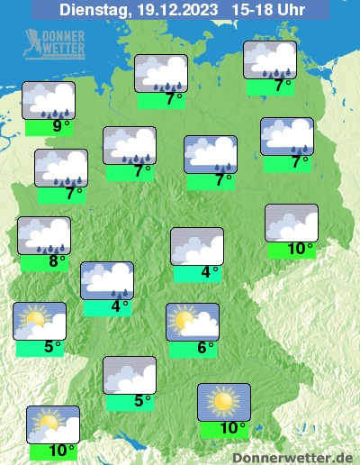 Die Temperaturen gehen in der Nordhälfte auf Werte um 7 bis 5 Grad zurück, im Süden Tiefstwerte verbreitet um 2 Grad.