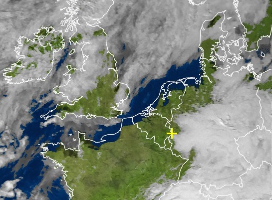 Das Satbild von heute Nachmittag zeigt sonniges Wetter in Niedersachsen, an der Nordsee, im Westen von NRW und im Saarland.