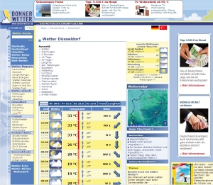 Bisher sah Donnerwetter.de so aus. Doch das alte Erscheinungsbild ist nicht nur optisch an seine Grenzen gestoßen. Die neue Seite passt sich an, je nachdem ob Sie sie vom Handy, Tablet oder eben vom PC auf dem Schreibtisch aufrufen. So finden Sie auf vielen Tablets unser Haupt-Auswahlmenü als Zeile über der Seite, auf Handys ist es rechts oben über einen Button ausklappbar. Die Wetter- und Ortssuche finden Sie auf jeder Seite.