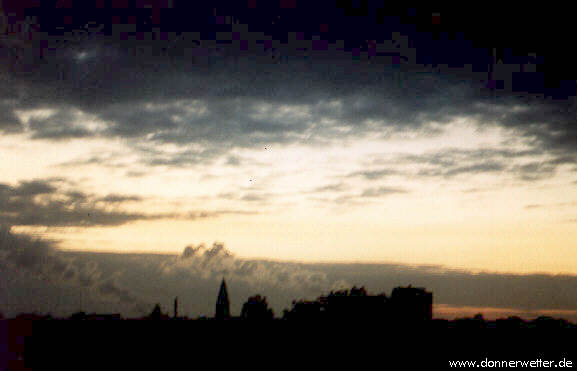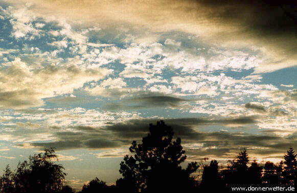 (siehe oben), Industrie-Lichter alle Formen von mittelhohe Altocumulus-Wolken in Abendstimmung im Sommer 1996