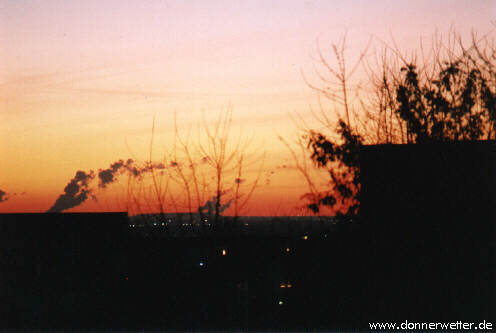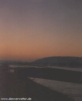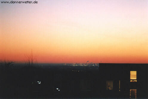 erstes Schimmern vor dem Sonnenaufgang Sonnenrot im Sommer 1996 - Blick von Bonn nach Köln
