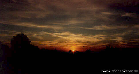 Sonnenrot im Sommer 1996 - hohe Cirrus-Wolken zu erkennen Sonnenrot im Sommer 1996 - Sonne kurz vorm Untergang