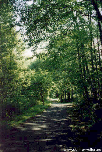 Schatten im Wald an einem Hitzetag mit 33 Grad. alles grünt an diesem schönen Tag - hohe Wolken künden von Wetterverschlechterung