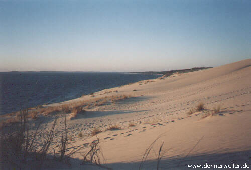 Düne mit Meer in Abendstimmung (Atlantik-Küste Frankreichs) Altocumulus und Cirruswolken (mittelhohe Wolken) in über dem Hafen von LaRochelle (Westfrankreich) kündigen eine Wetteränderung an