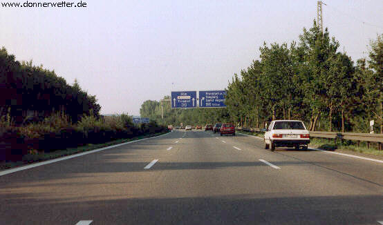 Fahren auf der Autobahn bei wolkenlosem Himmel hohe und mittelhohe Wolken kündigen eine Wetterfront an (die nächsten Stunden bleibt es aber vorerst noch schön)