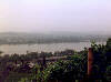 Nebelschwaden an einem kühlen Herbstmorgen starke Bewölkung , schlechte Sicht am Rhein