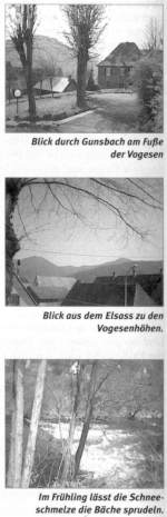 Der Frühling kommt aus der Schweiz und Frankreich nach Deutschland. Er wandert aus dem Rhonetal nach Norden, überspringt das Juragebirge zwischen der Schweiz und Frankreich und überwindet noch die Vogesen und erreicht dann im Elsass Mulhouse, Colmar und später Straßburg. Während auf den über 1.400 m hohen Bergen des Vogesen noch die Schneereste in der Ferne schimmern, spürt man in den Vogesentälern schon den Frühling. In Gunsbach, dem Ort in dem Albert Schweizer (Friedensnobelpreisträger 1952) aufgewachsen ist, erreicht das Quecksilber schon im März häufig 20 Grad.