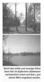 Besonders rund um den Kaiserstuhl und auf der Südseite des kleinen Mittelgebirges erwärmt sich die Luft schon im Laufe des Februars häufig auf 13 bis 15 Grad, so dass sich der Vorfrühling aus Frankreich über den Rhein schwingt und zuerst direkt am Fuße des Gebirges zeigt.