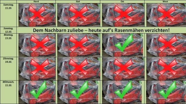 Die Pflege des Rasens sollte daher ein paar Tage aufgeschoben werden - denn ab der Wochenmitte ist deutlich trockeneres Wetter in Sicht!