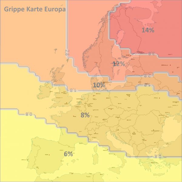 Verteilung Grippe- / Erkältungswahrscheinlichkeit Europa: