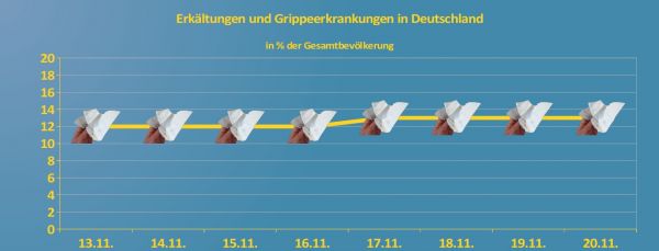 Das Schmuddelwetter erhöht die Anzahl der Bürger, die sich in dieser Woche mit Schnupfen, Bronchitis & Co. herumplagen, auf bis zu 13 Prozent am Ende der Woche.