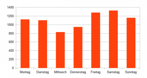 Die höchste Partikelzahl wird, und zwar im gesamten Bundesgebiet, übrigens nach der Arbeits- und Verkehrswoche am Samstag erreicht; bis Mittwoch fallen die Werte dann langsam ab.