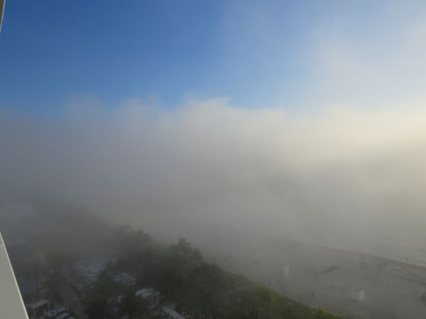 In den siebziger Jahren hat man in Miami Beach Strandsicherung betrieben. Einen Pflanzengürtel durch das Militär angepflanzt, der jetzt überlebenswichtig wird. Er wird das Wasser am Strand zu den Hotels bremsen. Es sind nur wenige Meter, wie hier beim weltberühmten aus 007 bekannten Hotel Fountainebleau Miami Beach zu sehen ist.