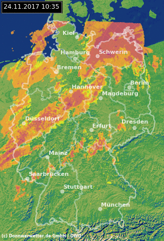 Fast in ganz Deutschland herrschte am Donnerstag (09.11.) dichtes Novembergrau. Örtlich tröpfelte oder nieselte es etwas. Lediglich im Küstenbereich blinzelte gelegentlich mal die Sonne hervor. Die Temperaturen bewegten sich zwischen 6 und 12 Grad C, wobei die höchsten Werte auf den Nordseeinseln erreicht wurden. Ab dem Abend setzte von Nordwesten dann vermehrt Regen ein.