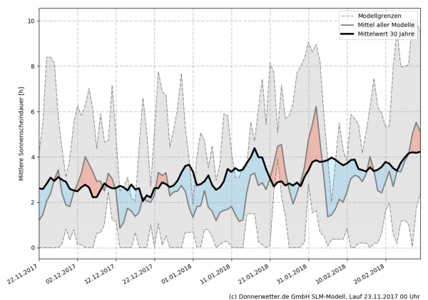 Die kommenden Wochen bringen der Südhälfte mittlere Lufttemperaturen, die sich meist unter dem langjährigen Durchschnitt bewegen. Immerhin liegen die zu erwartenden Niederschlagsmengen bis Mitte Januar häufig unter dem Mittel. Phasen mit mehr Sonne als sonst beschränken sich in diesem Jahr auf die erste Dezemberhälfte.