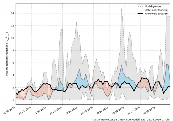 Die kommenden Wochen verlaufen laut aktueller Modellrechnungen im Norden zu kühl und zu trocken. Die Anzahl der zu erwartenden Sonnenstunden liegt bis Ende kommenden Monats mal über, mal unter dem langjährigen Mittel.