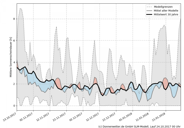Wie unsere Modelle den Wetterverlauf für den Ostteil des Landes bis Januar 2018 aktuell berechnen, sehen Sie in den drei Grafiken.