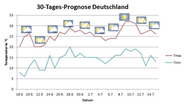 Die neueste Donnerwetter.de Langfristprognise zeigt, dass es zu über 70% Wahrscheinlichkeit einen zu warmen Sommer gibt.