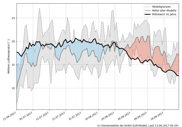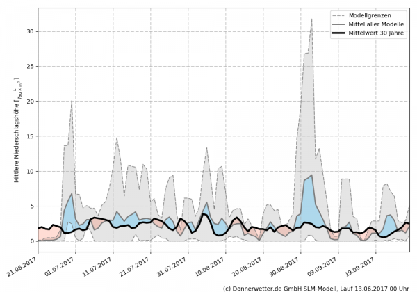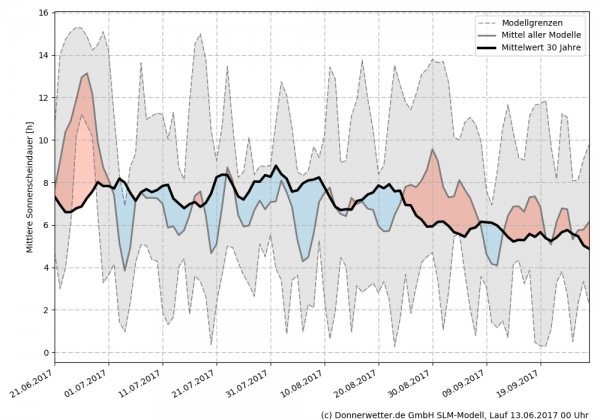 Von einem "schlechten Sommer" kann auch im Osten keineswegs die Rede sein - auch wenn sich die Mitteltemperaturen bis Ende August meist unter den langjährigen Werten bewegen. Vor allem in der zweiten Hälfte des Juni gibt es mehr sonnige Phasen als üblich, die Abweichungen beim Niederschlag sind dagegen nur wenig spektakulär.