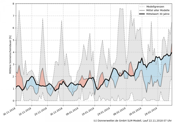 Unsere aktuellen Langfristprognosen für Lufttemperatur, Sonnenscheindauer und Niederschlagshöhe.