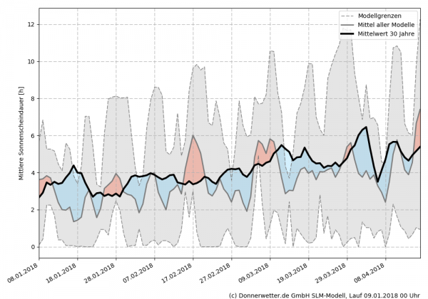 Unsere aktuellen Langfristprognosen für Lufttemperatur, Sonnenscheindauer und Niederschlagshöhe.