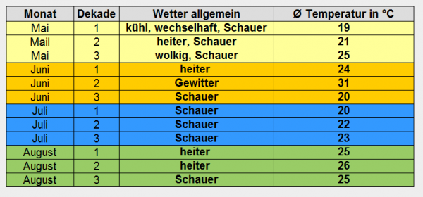 Beständigeres und wärmeres Wetter könnte erst der Juni bringen, lokale Gewitter und Unwetter inklusive. Der Juli macht es dann dem April und Mai gleich: Er wird nach derzeitigem Stand deutlich kühler und nasser als der Vormonat.