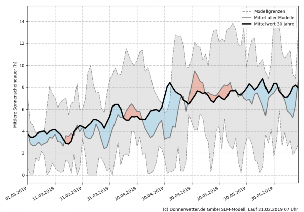 Unsere aktuellen Langfristprognosen für Lufttemperatur, Sonnenscheindauer und Niederschlagshöhe.