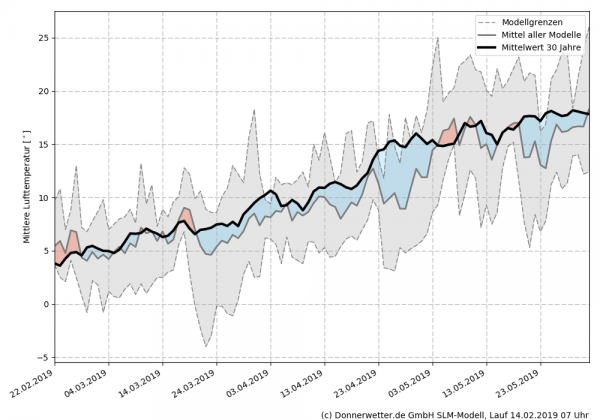 Laut der aktuellen Prognose unterscheiden sich die Temparturen in den nächsten Wochen nicht erheblich zu denen der letzten Jahre. Außerdem welchselt sich trockenes und nasses Wetter stetig ab und es gibt zeitweise sehr sonnige Abschnitte.