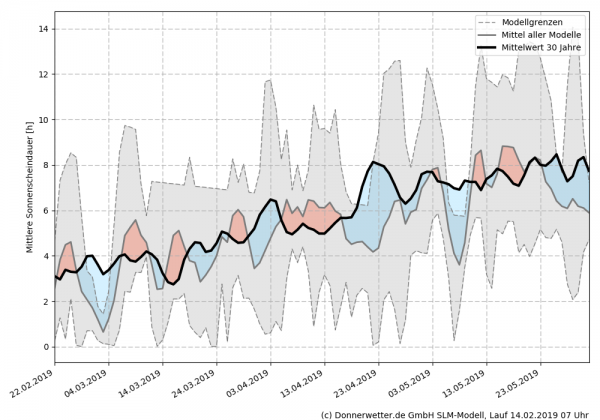 Unsere aktuellen Langfristprognosen für Lufttemperatur, Sonnenscheindauer und Niederschlagshöhe.