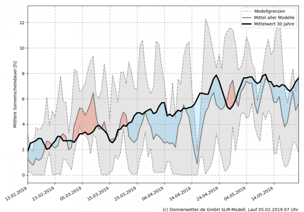 Unsere aktuellen Langfristprognosen für Lufttemperatur, Sonnenscheindauer und Niederschlagshöhe.