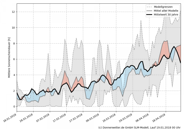Unsere aktuellen Langfristprognosen für Lufttemperatur, Sonnenscheindauer und Niederschlagshöhe.