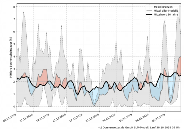 Unsere aktuellen Langfristprognosen für Lufttemperatur, Sonnenscheindauer und Niederschlagshöhe.