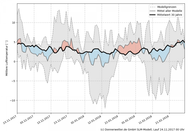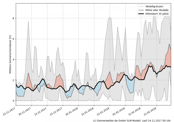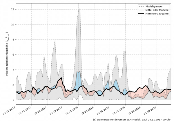 Weiterhin berechnen die aktuellen Modelle die Tage um Weihnachten als zu mild, davor und danach bleiben die mittleren Lufttemperaturen unter dem langjährigen Mittel. Die Niederschlagsmengen liegen für den Rest des Jahres insgesamt unter dem Durchschnitt, bei den Sonnenstunden ist die Bilanz in diesem Zeitraum ungefähr ausgeglichen.