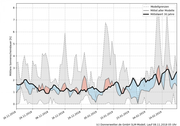 Unsere aktuellen Langfristprognosen für Lufttemperatur, Sonnenscheindauer und Niederschlagshöhe.