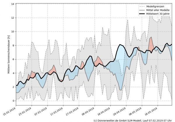 Unsere aktuellen Langfristprognosen für Lufttemperatur, Sonnenscheindauer und Niederschlagshöhe.