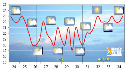 Wir rechnen mit einem sehr wechselhaften Juli: Heiße, sonnige Tage werden immer wieder von neuen Schauern und kühleren Temperaturen abgelöst. Für den August sieht es dann wieder insgesamt sommerlicher und stabiler aus.