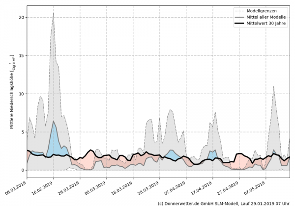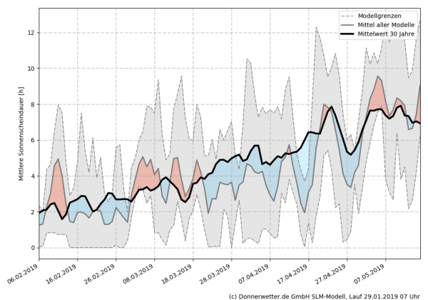 Unsere aktuellen Langfristprognosen für Lufttemperatur, Sonnenscheindauer und Niederschlagshöhe.