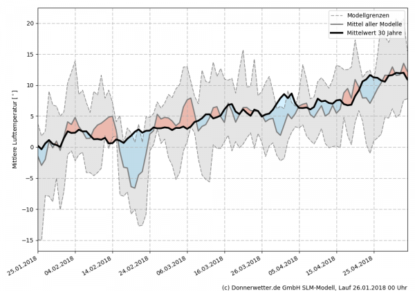 Unsere aktuellen Langfristprognosen für Lufttemperatur, Sonnenscheindauer und Niederschlagshöhe.