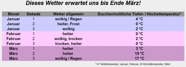 Die Detailaussichten bis Ende März 2017!